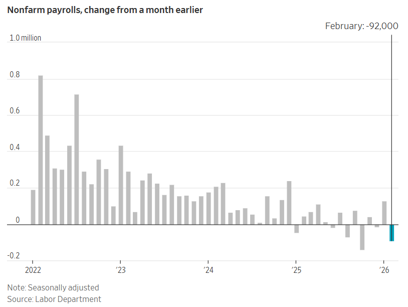 Employers cut 92,000 jobs in February, according to the Bureau of Labor Statistics, a reversal of January’s job gains. Economists had predicted a stronger showing, with some forecasting that January’s growth would continue and add 59,000 jobs to the economy.