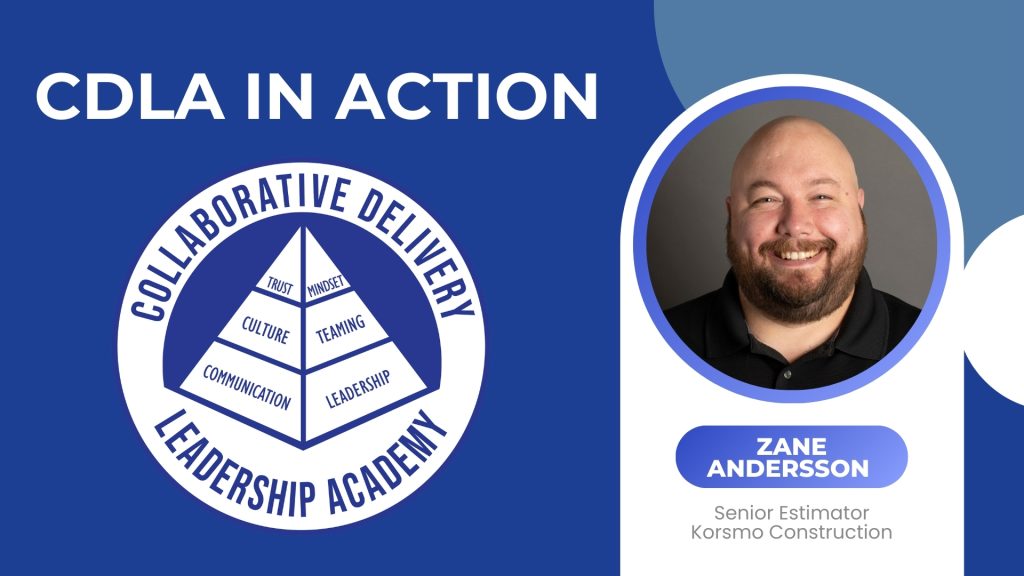 That’s the core message from Zane Andersson, Senior Estimator at Korsmo Construction and a graduate of DBIA’s Collaborative Delivery Leadership Academy (CDLA). For Andersson, the Academy reshaped how he approaches his work and how he encourages others to lead, regardless of their role.