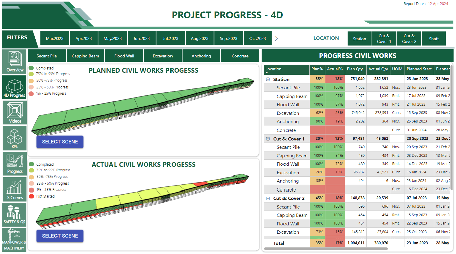 We deployed a set of integrated analytics tools tailored for different stakeholders, site engineers, project managers, planners and executive leadership. The data flowed in from multiple sources, including Primavera schedules, BIM-based quantity takeoffs, 4D simulations and even field entries. The result was that everyone started speaking the same language.