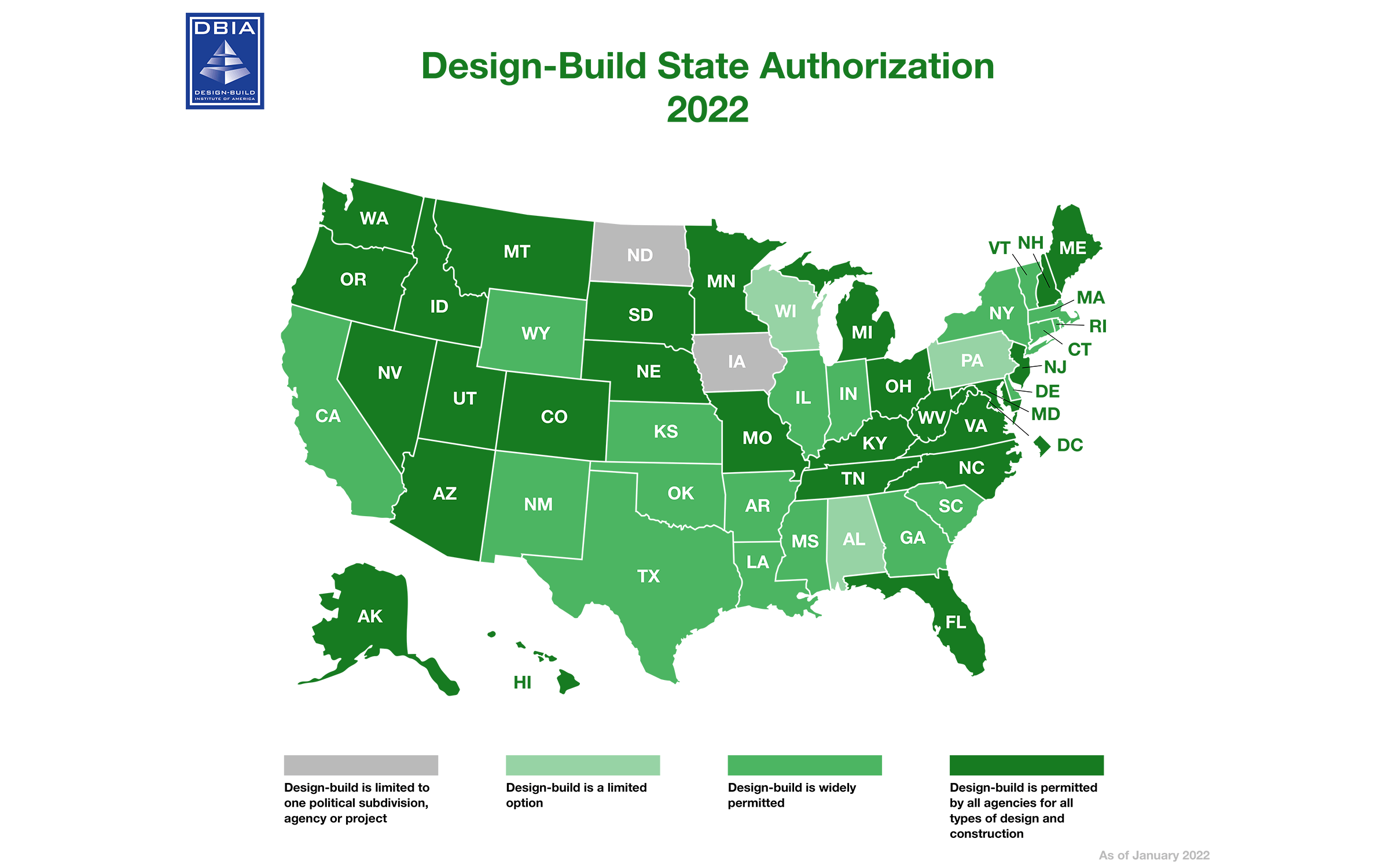 This year, the state of Iowa not only rejected the use of design-build but also rolled back the clock by preventing the use of design-build in the state’s university system despite delivering years of successful design-build projects. As one of only two states without design-build authority, Iowa remains an outlier.