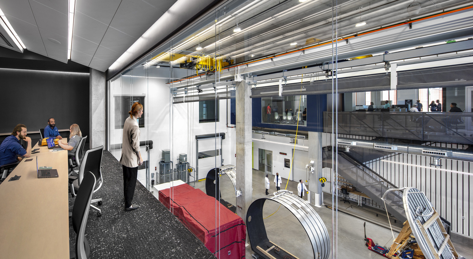 The Applied Research Building houses specialized equipment such as the largest Thermal Vacuum (TV) chamber on a university campus in the world, an anechoic chamber and specialty clean room labs. By consolidating multiple technologies and testing spaces under one roof, the project aimed to enhance efficiency, reduce expenses and accelerate research. And the building’s innovative design reflects the unique research conducted within, but at the same time successfully integrates into the campus aesthetically.