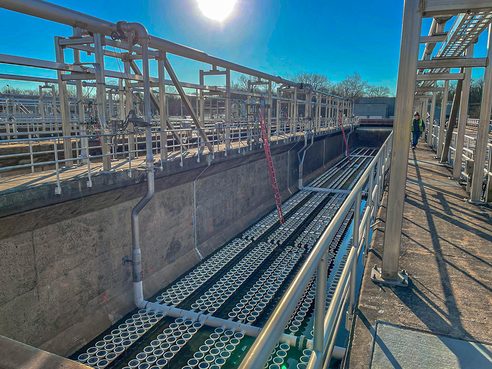 The project also made extensive use of prefabrication to reduce schedule impacts and limit on-site disruptions. Stainless steel aeration header piping was pre-fabricated offsite with input from the contractor and engineer, reducing field welding and installation time. Three prefabricated electrical equipment houses arrived fully equipped and tested, eliminating prolonged power interruptions and expediting the schedule. And careful sequencing enabled new facilities to be built without affecting ongoing operations.
