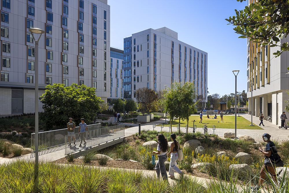 Faced with a rising demand for student housing, the University of California San Diego sought a cost-effective, flexible solution that could be delivered at speed without sacrificing quality or long-term maintainability. The result was the Theatre District Living and Learning Neighborhood. This multi-building student housing complex not only met immediate capacity needs but also delivered comfortable, durable living spaces enriched with features that support student well-being and community connection. Shared spaces like meditation pavilions, tea houses, a Market Hall dining area and rooftop meeting centers encourage connection among students, faculty and visitors, creating a vibrant, welcoming gateway that bridges campus and community.